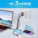 PD USB充電器 65W GaN Type C 急速充電器 高速充電器 PD対応 USB-C×2 & USB A 3ポートGaN(窒化ガリウム) 折りたたみ式プラグ PSE技術基準適合 iPhone/Android/iPad/MacBook/ノートパソコン各種対応 その他USB-C/USB-A機器対応