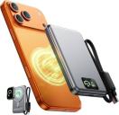 アップグレード版【MagSafe対応15W急速充電】超薄型 モバイルバッテリー 軽量 小型 10000mAh大容量 まぐせーふ対応 マグネット式ワイヤレス充電器 ケーブル内蔵 PD22.5W PSE認証済iPhone/iPad/Android/Airpods/Apple Watch 旅行/出張/災害用 機内持ち込み可