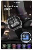 送料無料 未使用品 SYNOKE Eスポーツ デジタル 防水 スクエアウォッチ メンズ 腕時計 ブラック