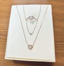 ハートのネックレス&リングは、ハートモチーフのストーンの周りにフリルのようなデザインと一粒ダイヤモンドが5つデザインされた素敵なお品です。