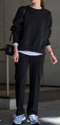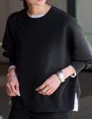 身頃はゆったりしたラインですが袖口が長めのリブ編みですっきりしたスウェット感覚で着れるニットです。