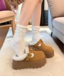 ふわふわプラットシューズ 暖かい冬靴 履きやすい フェイクムートンローファー 歩きやすい もこもこ防寒靴バックルデザイン
