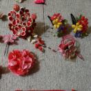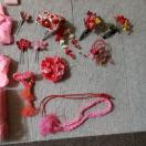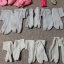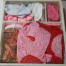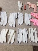 足袋は 足裏の部分が汚れ色あります。小さいピンク花刺繍のしみあり。足袋のサイズ平置きでおよそ親指先からかかとで19cm13cm13.5cm14cmのです。髪飾り入れてるケースや髪飾りもくすんでます。100サイズ発送です。締切日時