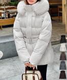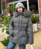 暖かさとデザイン性を兼ね備えたフェイクファーフード付きダウンジャケットでふ