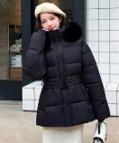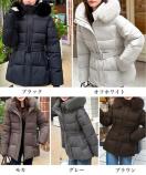 レディース フェイクダウンコートミドル丈 ファーフードアウター 中綿ジャケットウエストマーク 保温防寒防風 あったか冬服