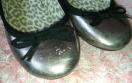 軽量 リボン付きフラットシューズ ローヒールパンプス M ゴールド 23.5cm