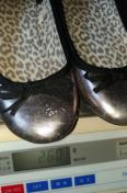 普段S~M/22.5~23.5p着用でやや大きめでした。厚手の靴下をはいてちょうどいいくらいです。近くで見ると表面に細かい傷・剥がれあります。