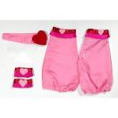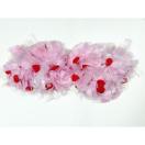 キラキラした光沢のあるピンク色のスパークサテン生地と赤色のベロア生地と赤色のサテンリボンで制作しました。作りが雑な部分がありますので、気になる方はご遠慮ください。