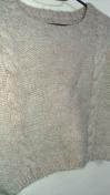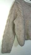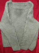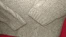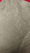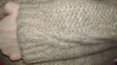 やや厚手、タグはありませんがウールっぽい(手編みかも?)です。身長153cmでちょうどくらいです。