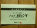 メガネ30%OFF券1枚(2枚目画像)と補聴器10%OFF券1枚(3枚目画像)のセットです。