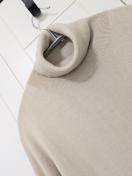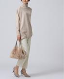 身頃はゆったりとしたサイジングで、コートインしやすいよう細めの袖、ネックはゆったり目のターンバックネックになっています。