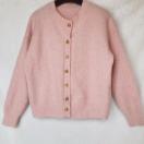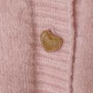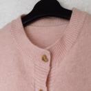 ハート型ボタンが特徴的なピンクのさシンプルなニットカーディガン。