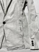 シングル1Bテーラード型ですがデニムの様な生地の色落ち加工により独特な風合いを醸し出してます