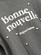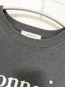ハーフミラノ編みで程よい厚みがある生地を使用し、発砲プリントで立体感のあるロゴとランダムに施されたパールが目を惹く一着。
