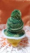 ポンポン帽子とケープのひよ雪だるまです。