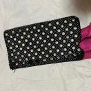 パッと目を引くカラフルな風車の飾りつけがぎっしり!多機能ポーチです。黒地に鮮やかなマルチカラーの飾りつけ、玉ビーズが敷き詰められた、とても豪華で元気が出るデザインです。長財布としてはもちろん、通帳ケースやコスメポーチ、スマホ入れなど、マルチにお使いいただけます。バッグから取り出すたびに気分が上がるような、存在感たっぷりのアイテムです。