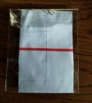 - 封筒のデザイン: 赤いラインの入った白い封筒