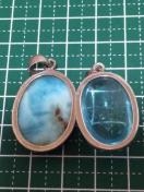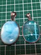 ブルートパーズは中央に大きめクラックがあり、黄色い部分もあります。クラックに虹がでています。