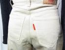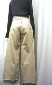 ウエスト約63-65cm(約25インチ)位の方向けで、ハイウエストなのでスタイルアップ効果があり、身長165cm前後の方で裾がくしゅっとなるくらいの股下設定が多いです。生地はコシがあるものを使っている