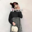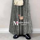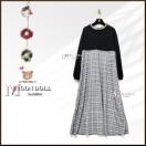 ┗モノトーンチェック柄と無地の切替が目を引くロング丈のワンピース