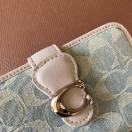 ● 淡いライトブルーのデニム調デザインにC金具が映える人気モデル。