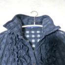 襟ワイヤー入り、ロールアップ袖、シワ加工、ベルト紐付きです。