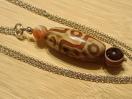 石屋より、変わり目の九眼天珠が4点入荷してきました。同時に赤眼天眼石も入荷があり、大小の赤眼天眼石と九眼天珠を紡ぎ、ペンダントとしました。チェーンは、少し長めで天珠が胸元に届く感じやもう少し長いタイプのものもあったり、長めです。付属のチェーンをご一緒しますね。