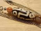 石屋より、変わり目の九眼天珠が4点入荷してきました。同時に赤眼天眼石も入荷があり、大小の赤眼天眼石と九眼天珠を紡ぎ、ペンダントとしました。チェーンは、少し長めで天珠が胸元に届く感じやもう少し長いタイプのものもあったり、長めです。付属のチェーンをご一緒しますね。