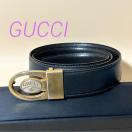 GUCCI グッチ レザー ベルト ヴィンテージ ゴールド バックル ブラック メンズ レディース 0058321115c