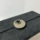 Genuine GUCCI GG Canvas Double Hook Long Wallet Leather Black Silver Hardware
