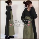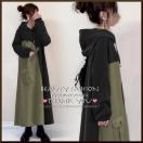 ┗ミリタリー風とブラックの切替が格好いいカジュアルパーカーロングワンピース