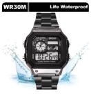 送料無料 未使用品 シルバー メンズ腕時計 デジタル クロノグラフ ミリタリー時計 スポーツ カレンダー
