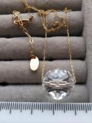 チェーンは刻印ないのでメッキだと思います。キレイなカットのクリスタルペンダントです。