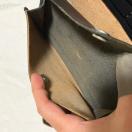 ダブルステッチ(かがり縫い): 財布の縁はレザー紐で丁寧に編み込まれており(レースアップ)、強度とともにバイカーズウォレットらしいタフな印象を与えます。