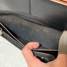 職人によるコバ仕上げ: 財布の縁(コバ)も丁寧に磨き上げられており、ブランドのこだわりが細部に宿っています。
