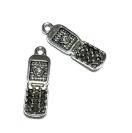 578 銀色の携帯電話っぽいチャーム 2個 金属パーツ デザインチャーム レトロ
