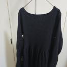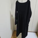 シンプルなデザインの黒いニットワンピース、長袖で快適な着心地。