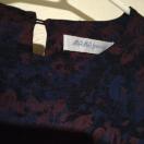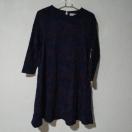 ダークブルーとパープルの花柄デザインの長袖チュニック、Sサイズ。