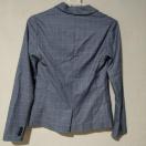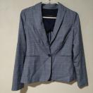 グレーのチェック柄テーラードジャケット、洗練されたデザインでビジネスシーンに最適。