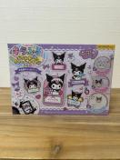 「クロミ」の型が5種類入っています。イラストカード5種類入り。イラストカードの上にフィルムを重ねて色を塗れば、貼ってはがせるジェルシートの完成。携帯やガラスに貼れます。8色(10本)のインクペンが入っているので、好きな色でデコろう!