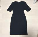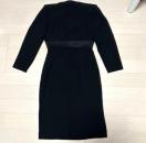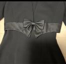 リボン付きのブラックワンピース、長袖デザインでフォーマルシーンに最適。