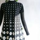 プリーツ織の美しい広がりに合わせたドット柄&花柄が、動くたびに優雅な印象を与えます。