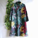 大きなボタニカル柄が印象的な裏起毛のニットソーワンピースです。