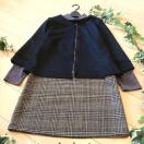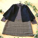 人気のスエード調ジャケットとツイード調切替ニットチュニックとのアンサンブル。