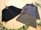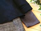 ハイゲージニットとチェックのツイード調素材との異素材切替チュニック。ハイネック。