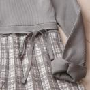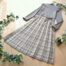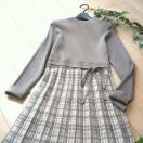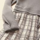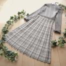 チェック模様のプリーツ織りが印象的な上質ニットワンピースです。