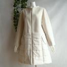 切替になった中綿キルトが印象的な大人のウール調コートです。