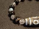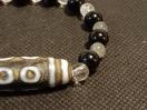 天珠自体がとっても強力なので、石たちも強力です。ガネーシュヒマール産水晶、チベット産モリオン、黒縞瑪瑙、ラブラドライトです。