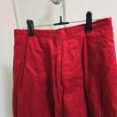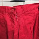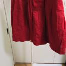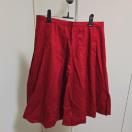 赤いフレアスカート、ボタン付きウエスト、プリーツデザインでスタイリッシュ。