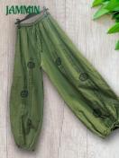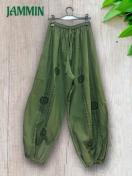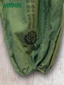 裾がゴムで絞ってあるアラジンなシルエットのアジアン柄(オーム、ヒンディ語等)入りアラジンパンツです。